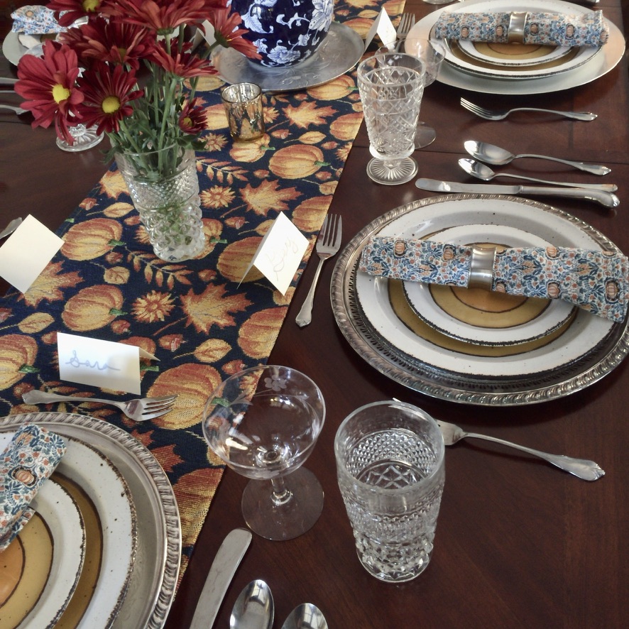 A Thanksgiving tablescape with vintage Wedgwood dishesChoose a warm, autumnal color palette